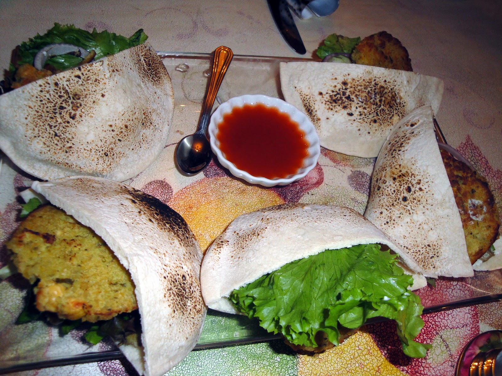 Stephanie started us off with her version of falafel, a light yet tasty flafel in a pita pocket served with lettuce and onion.